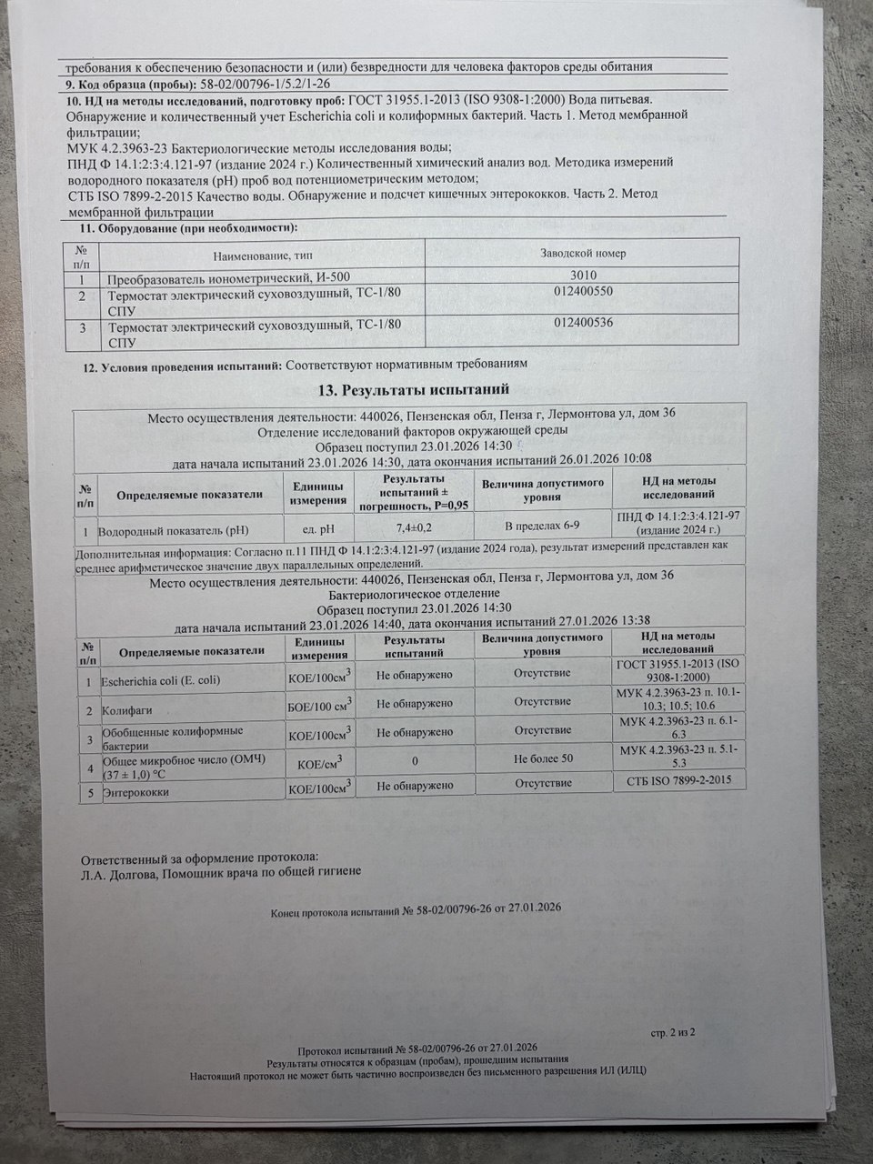 | Озонирование тары | 17.06.2025 | 17.06.2026 |