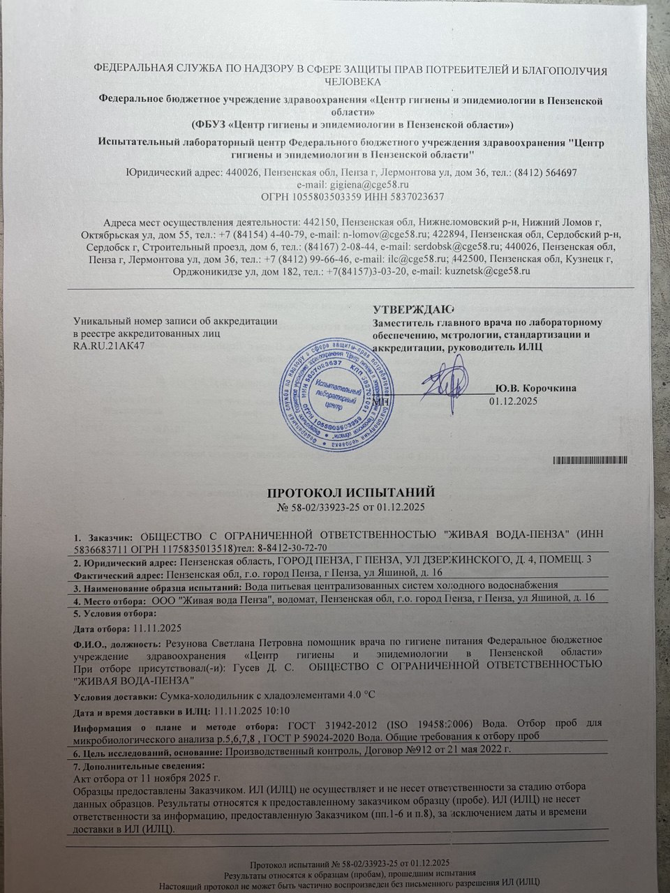 | Минерализатор турмалин | 24.11.2025 | 23.05.2026 |