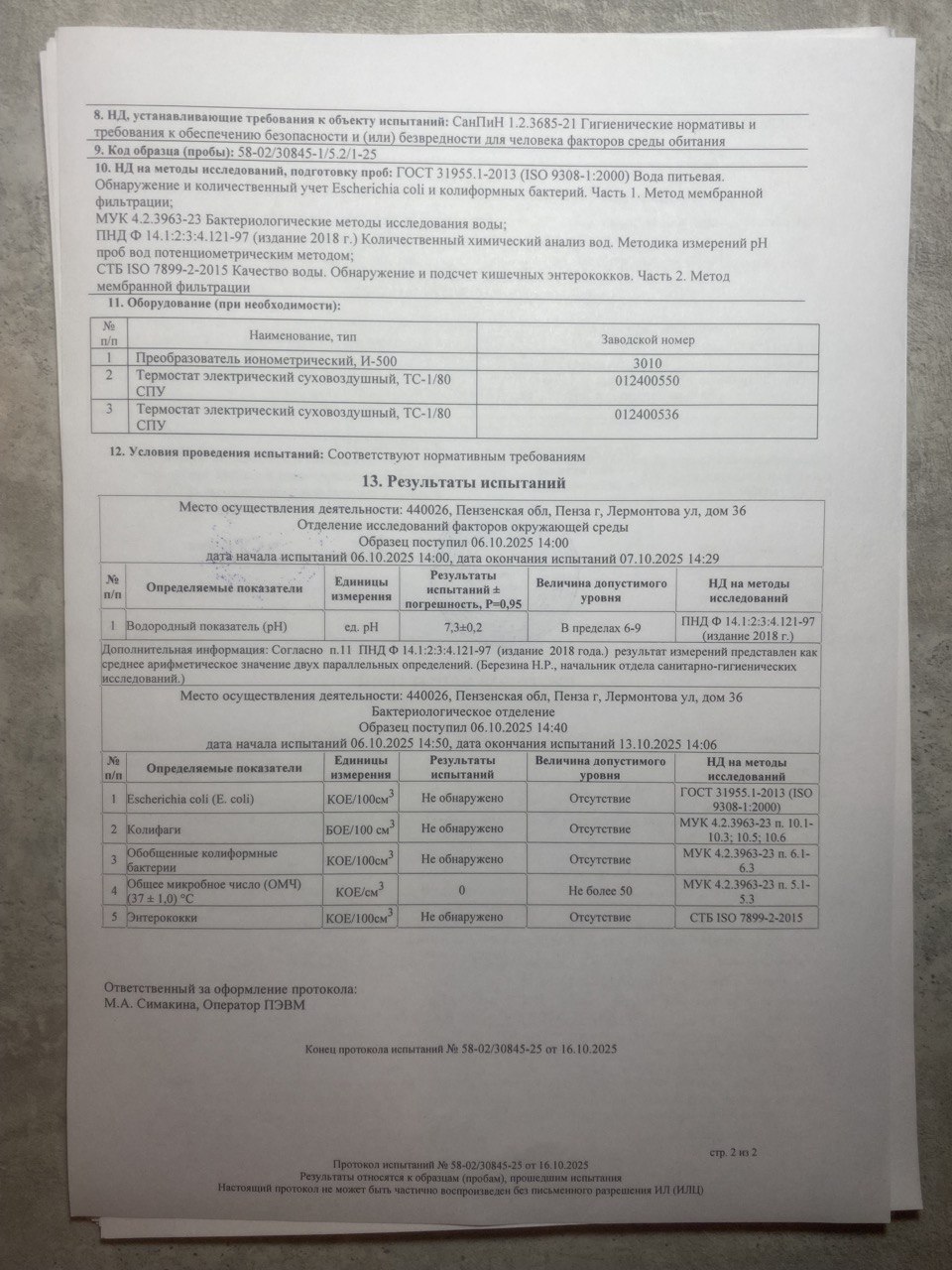 | Озонирование тары | 03.03.2025 | 03.03.2026 |