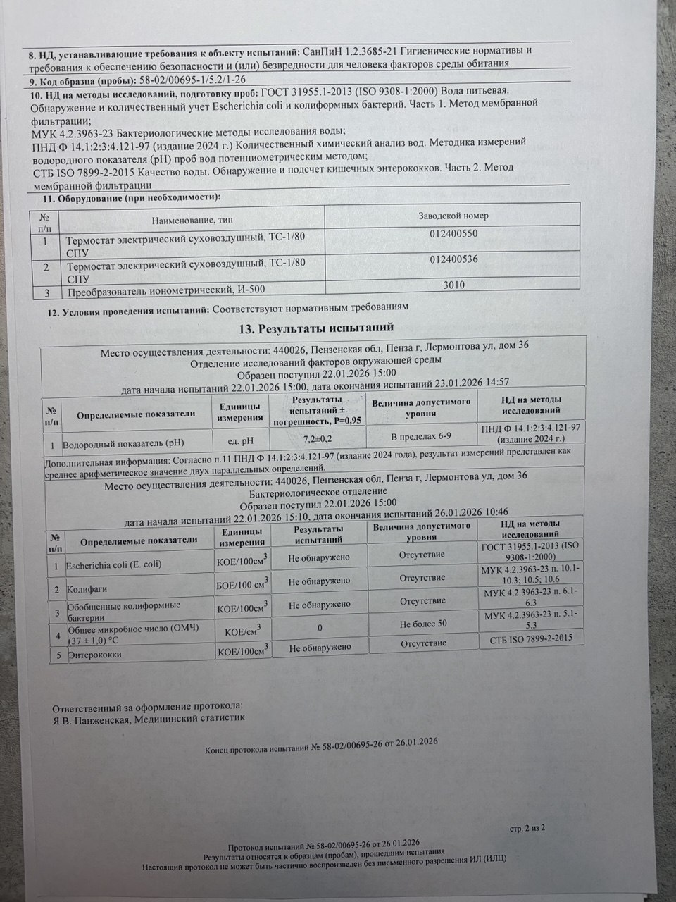 | Озонирование тары | 17.06.2025 | 17.06.2026 |