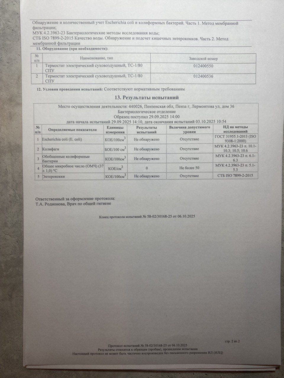 | Озонирование тары | 03.03.2025 | 03.03.2026 |