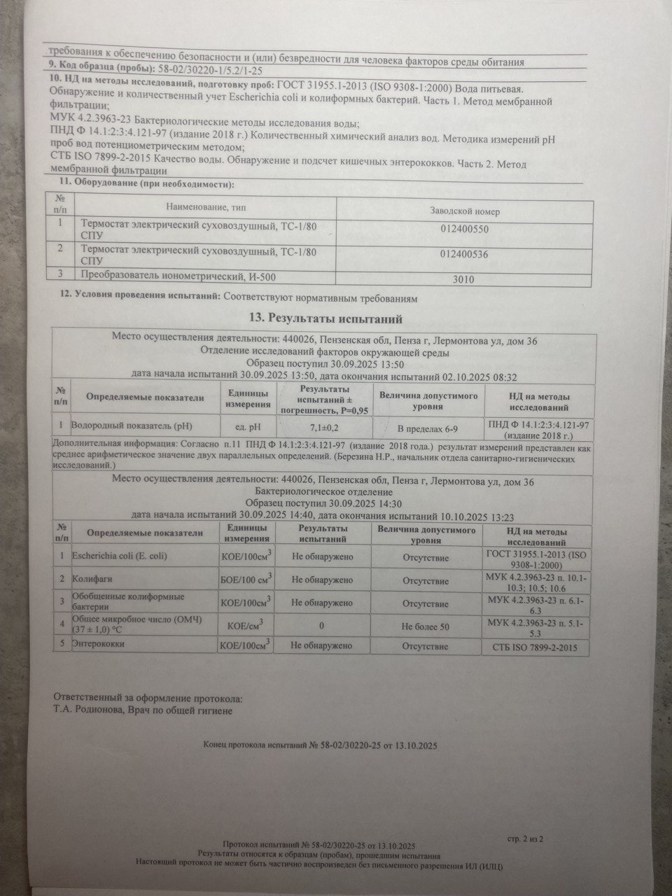 | Озонирование тары | 17.06.2025 | 17.06.2026 |