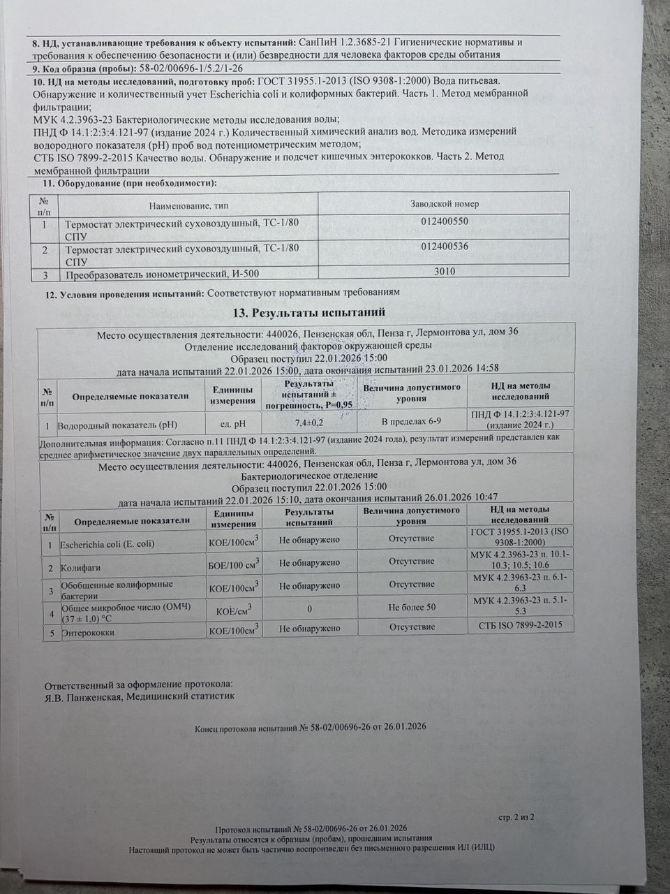 | Озонирование тары | 17.06.2025 | 17.06.2026 |
