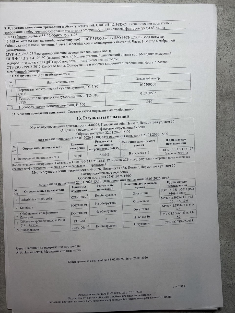 | Озонирование тары | 17.06.2025 | 17.06.2026 |