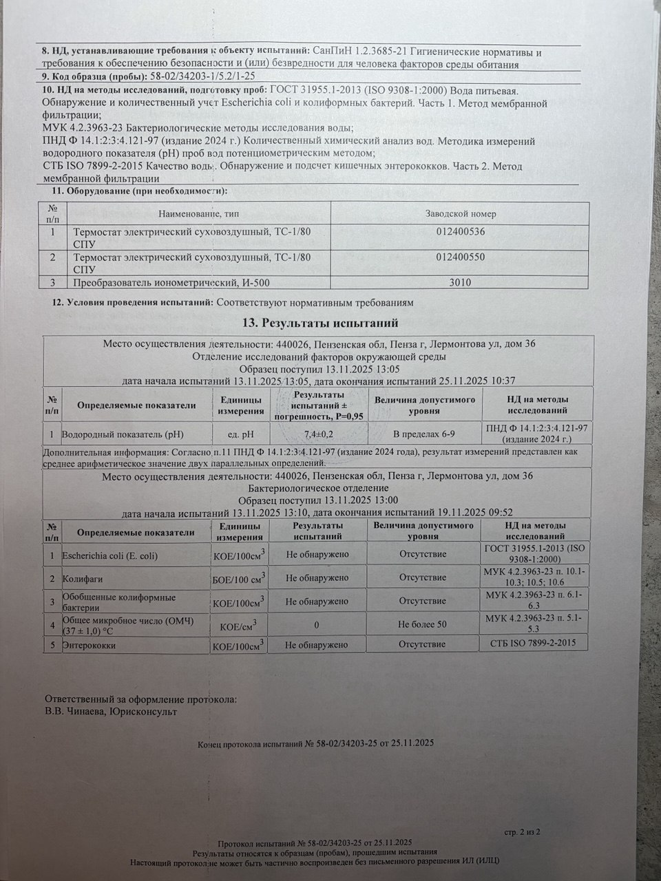 | Озонирование тары | 17.06.2025 | 17.06.2026 |