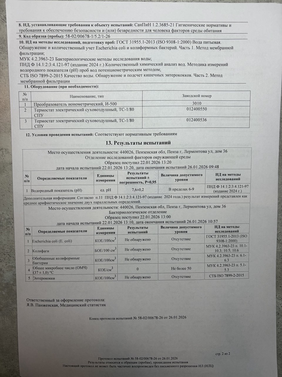 | Озонирование тары | 17.06.2025 | 17.06.2026 |