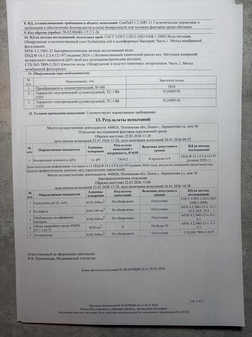 | Озонирование тары | 17.06.2025 | 17.06.2026 |